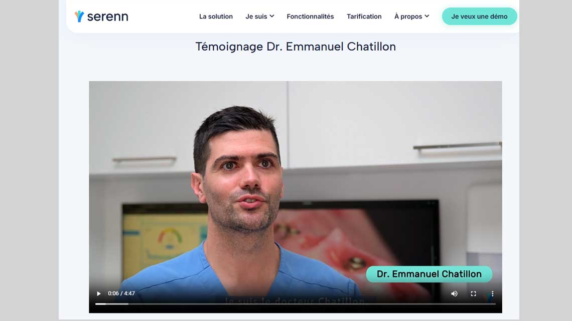Dans cette vidéo, on peut découvrir le retour d'expérience du Dr Emmanuel Chatillon avec l'application Serenn. Un grand merci à Jean Luc Thomas, photographe et vidéaste pour la captation et moi côté montage.