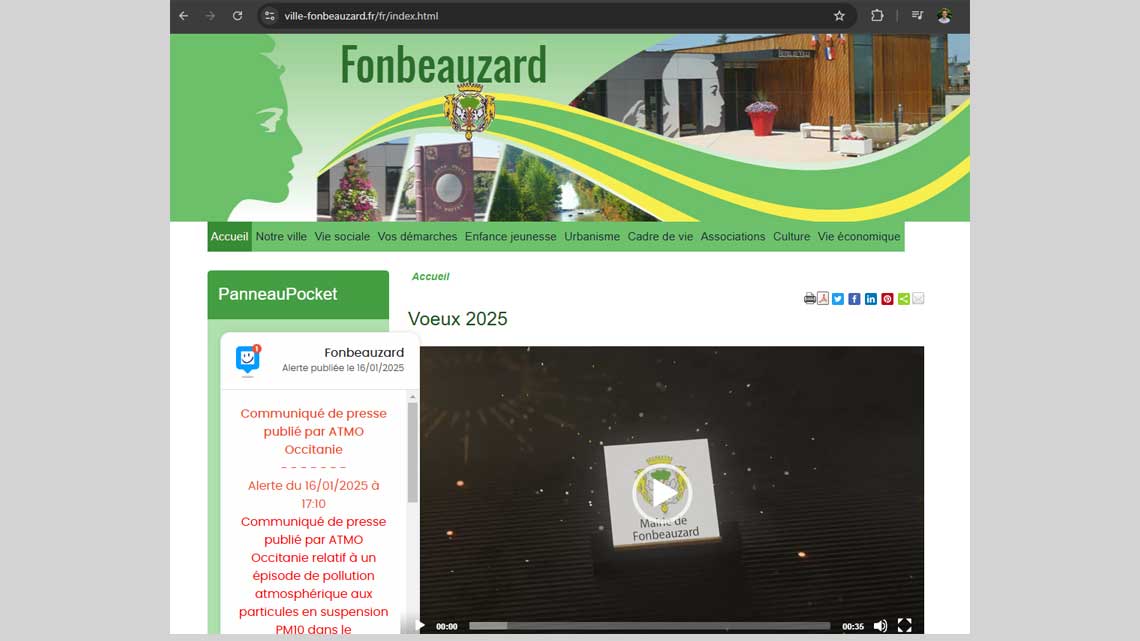 La vidéo des vœux a été personnalisée avec l'hôtel de ville de Fonbeauzard et le rond-point des Violettes. La diffusion s'est faite sur la page d’accueil du site de la municipalité durant le mois de janvier 2025.